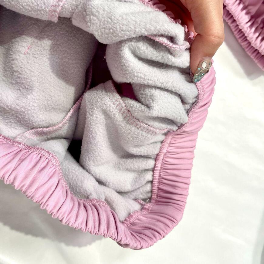 「パラシュートパンツ(裏起毛)」の裏側には、起毛素材が使われています。モコモコし過ぎない裏起毛なので、着膨れしにくいのも魅力的なポイントです。