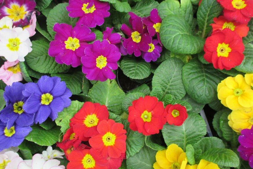 プリムラ・ジュリアン、プリムラ・オブコニカなど、プリムラは品種の多い植物。花弁や形も多様ですが、よく出回っているのがプリムラ・ジュリアンです。