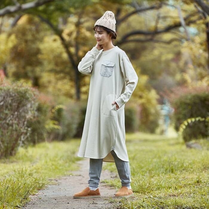 2. ワークマンの「裏シャギーワンピース」は、ポケットが3つもあるんです! 女性服のストレスを解消