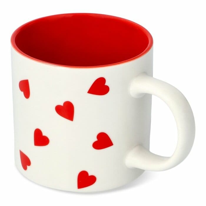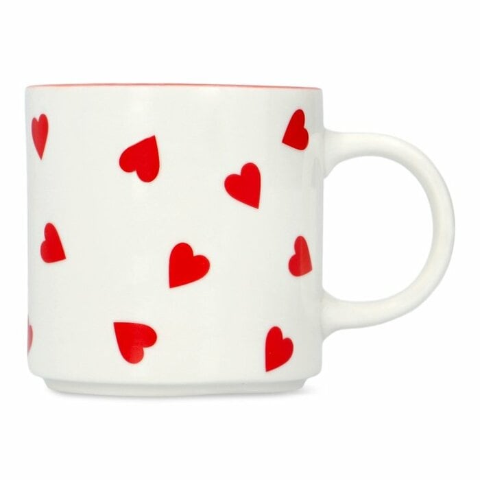 最初に紹介するのは、ホワイトとレッドのコントラストが素敵な新作!ハートのマグカップです。重ねて収納できるデザインだから、ペアマグとしてもおすすめ。