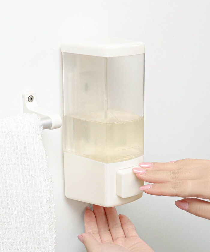 片手でワンプッシュできる、壁付けタイプのディスペンサーです。付属のマグネットで浴室の壁に簡単に貼り付けられます。