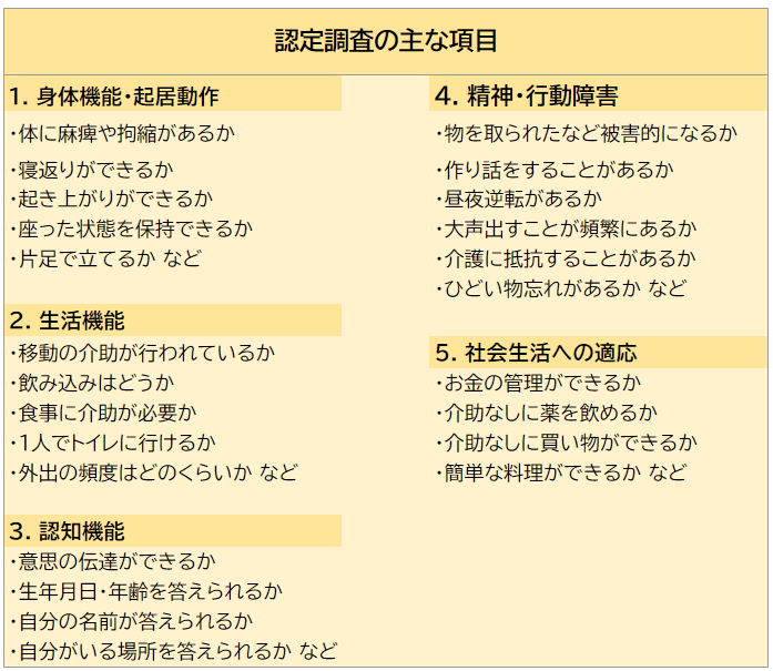 4. 介護認定調査の主な項目とは?
