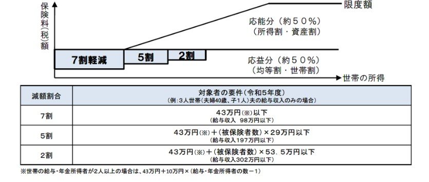 国民健康保険の保険料は、均等割の部分が2割から7割減額する措置を定めています。