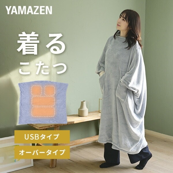 上からかぶって着るデザインの電気毛布です。USB接続でモバイルバッテリー(別売)と組み合わせれば、着るこたつを身に着けたまま動き回れる、理想的な生活が実現します。