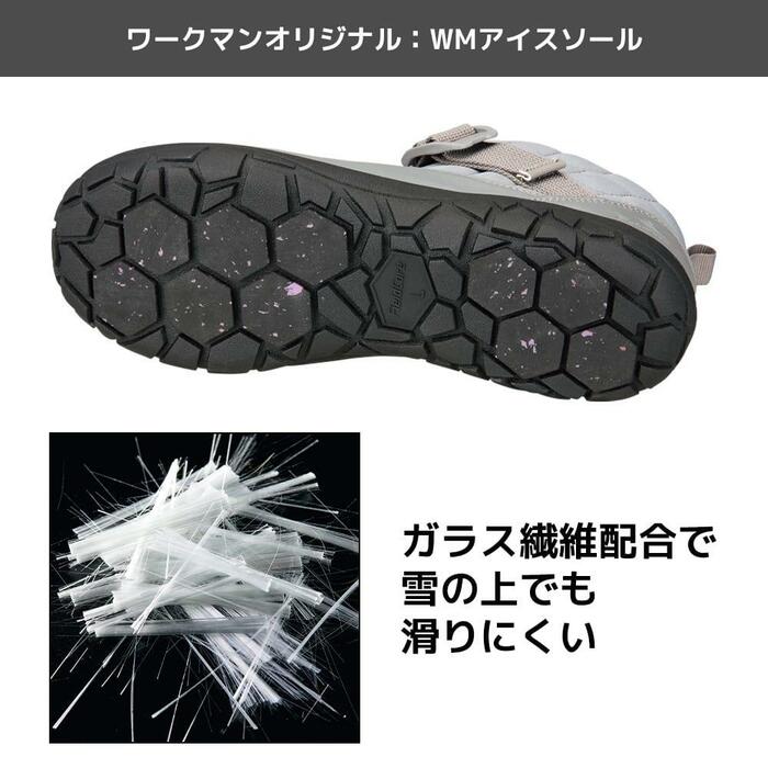 ソールには、ガラス繊維が配合されていて、雪の上でも滑りにくいです。冬の外出に便利に活用することができます。