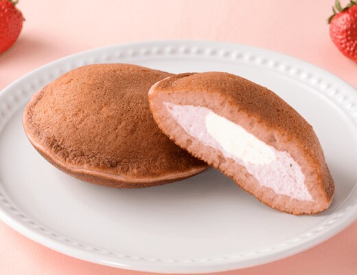 「ICHIBIKOコラボ商品。苺クリームとホワイトチョコクリームを組み合わせたどらもっち。」