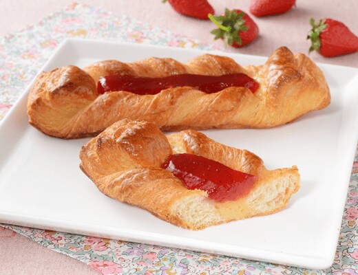「ICHIBIKOコラボ商品。デニッシュ生地に苺ジャムとカスタードの組み合わせ。」