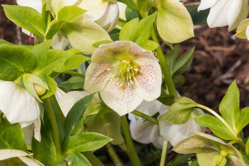クリスマスローズは大型の花が冬花壇の主役にピッタリ。常緑の葉も美しく、一度植え込むと放っておいても毎年美しい花を咲かせます。※参考価格:1000~2000円前後(3号ポット苗)