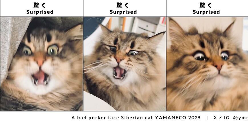 表情豊かな猫ちゃんの「驚き顔16連発」がX(旧Twitter)で注目を集めています。
