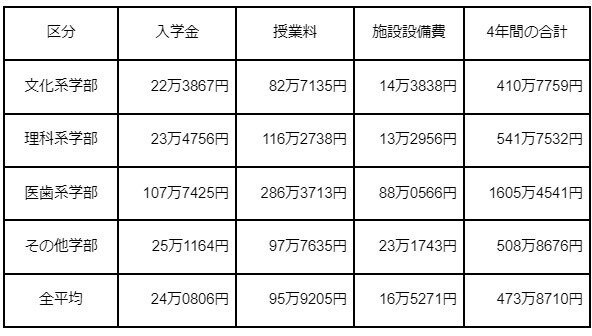 「国立大学」と「私立大学」を比べてみると学部によって大きく異なり、入学金や授業料では少なくとも1.7倍〜となっています。