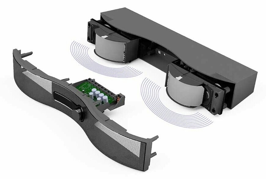 形状はバータイプになったことでよりテレビにフィットしやすくなりました。通常のテレビスピーカーよりやや厚めなので、テレビの前に設置する場合は多少工夫する必要がありそうですが、室内に馴染みやすいデザインです。
