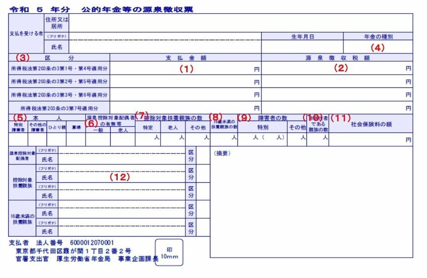 「令和5年分公的年金等の源泉徴収票」が届いたとき、具体的にどの箇所を確認すべきなのかを見ていきましょう。