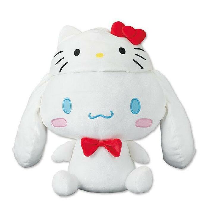 シナモロール・ハンギョドン・クロミが、ハローキティの帽子をかぶっているスペシャルデザインのアイテムです。