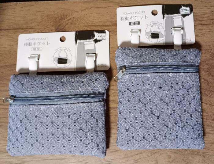 こちらがダイソーで販売されている「移動ポケット」です。カラーは、写真のグレーの他に、ホワイトとブラックも販売されていました。