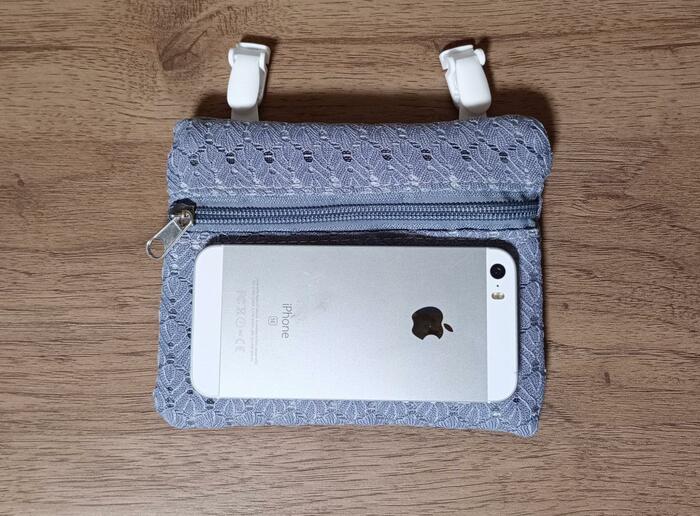 4インチ程度のスマホを横向きにして収納することができるサイズです。