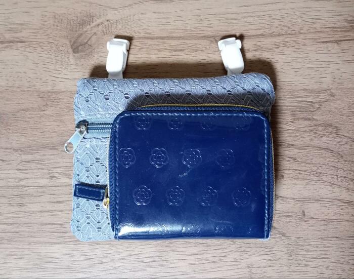 二つ折りタイプの財布を出し入れしやすい大きさです。財布やハンカチなどをちょっと収納しておくのに便利です。