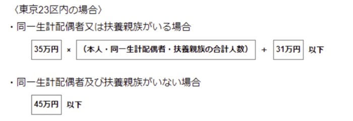 35万円×(本人・同一生計配偶者・扶養親族の合計人数)+31万円以下