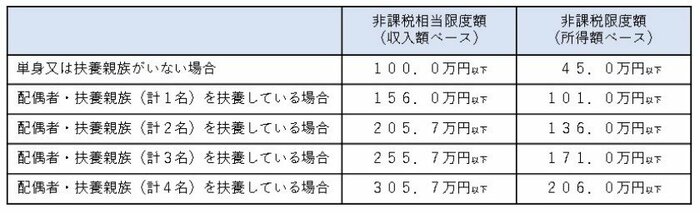 扶養人数ごとの年収要件は、下図を参考にしてください。