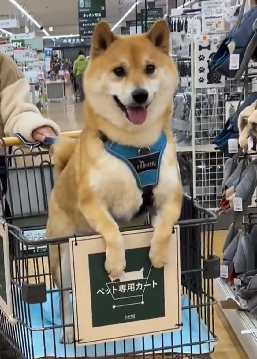 トリミングを恐れてソワソワしていたワンちゃん。翌日も同じホームセンターへ。嬉しい記憶がまだ残っているからか、上機嫌でカートから身を乗り出しています。前日とはうってかわって明るい表情がかわいらしいですね。