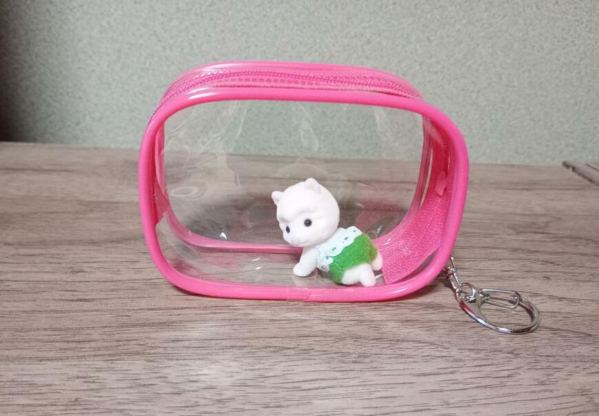 - 材質:塩化ビニル樹脂(本体)・亜鉛合金、ポリエステル、ナイロン(ファスナー)・ニッケル、スチール(カニカン)