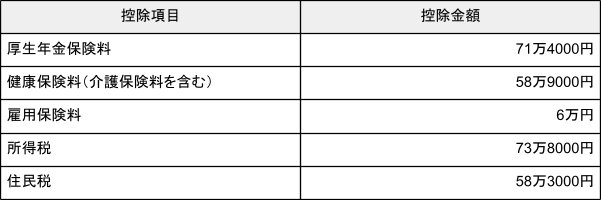 このケースで、給与から差し引かれる項目と金額は以下のようになります。