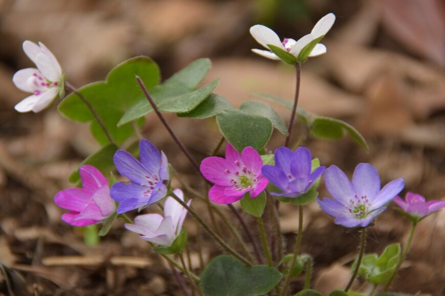 まさに「雪を割るようにして」芽吹く、寒さに強い多年草です。2~5月にかけて、青や紫、白、ピンクなど色鮮やかな萼片が、花びらのように開きます。