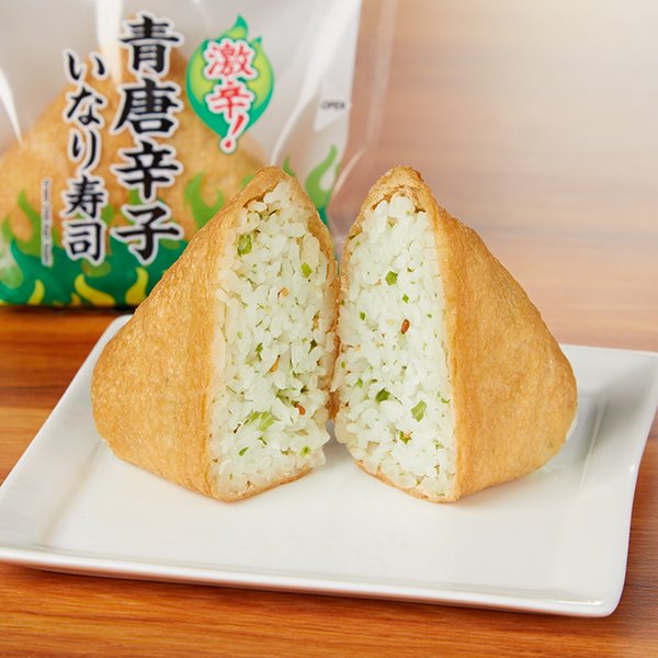 「ピリッと爽やかな辛みが特徴の青唐辛子を酢飯に混ぜ込んだ、激辛仕立てのいなり寿司です。」