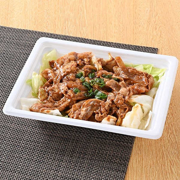 「豚肉とキャベツ、玉ねぎなどを辛味噌ダレで炒めた商品です。※宮崎県、鹿児島県では取り扱いがございません。」