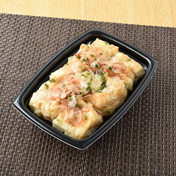 「なめらかな絹豆腐を、くちどけがよくつゆのからみの良い衣をつけて揚げた商品です。」