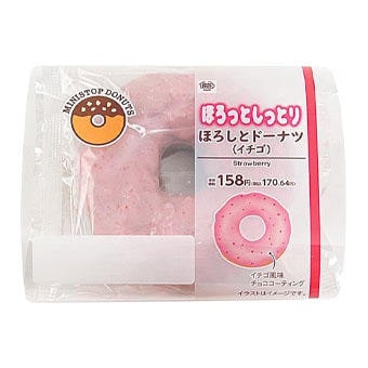 「ほろっと、しっとり食感とやさしい甘さが感じられるドーナツです。苺チョコをコーティングし、甘酸っぱい味わいや華やかな見た目に仕上げました。」