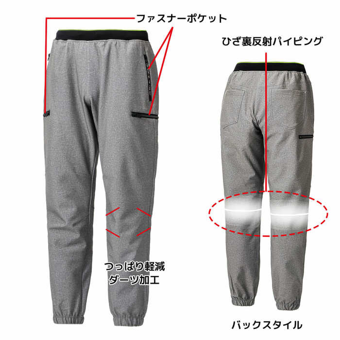 ひざの突っ張りを軽減するダーツ加工が施されているので、動きやすく、普段着やスポーツ、屋外作業にも大活躍間違いなし!