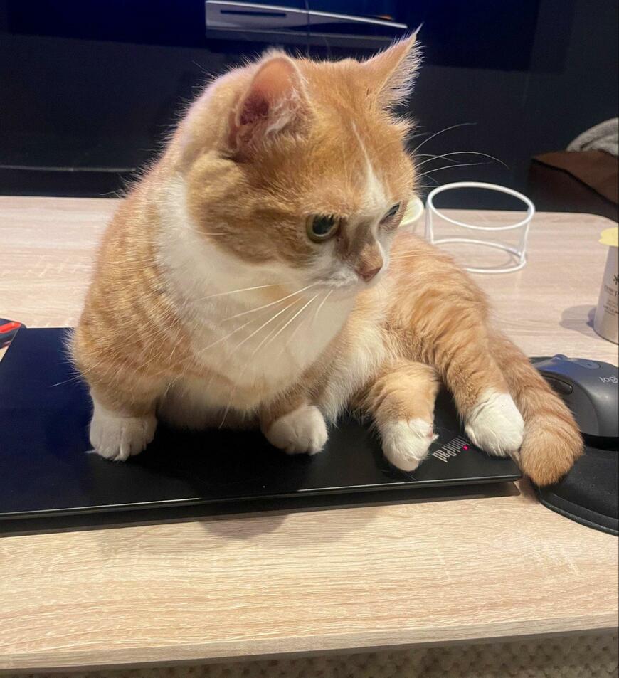 「残業を阻止する猫」というコメントとともに投稿されたのは、一枚の写真でした。Xでたくさんの注目を浴びているのは、猫の男の子「虎太郎」くんです。