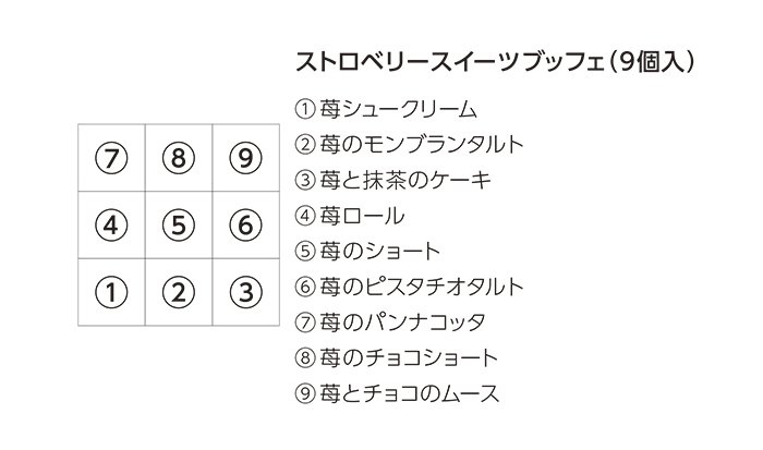 2. 苺づくしが楽しい「ストロベリースイーツブッフェ(9個入)」