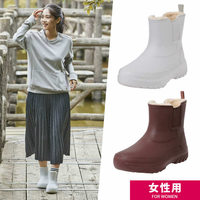 女性用に開発された、EVA樹脂素材のボアシューズです。雨の日はもちろん、雪の日のも使えるうれしい防水加工。