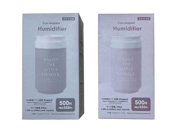 デスクワークにも便利なUSB式の缶型加湿器です。ピンクとグレーの2色展開で、タンク容量は220mlとコップ一杯ほどの量が入ります。