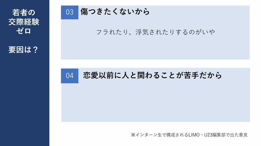 3. 若者の間で交際経験ゼロが増えている理由 意見3:傷つきたくないから