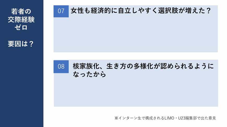 7. 若者の間で交際経験ゼロが増えている理由 意見7:女性も経済的に自立しやすいから?