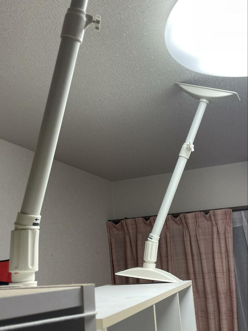 部屋の真ん中に大きな棚を置くことを心配した@natsu_eringiさんのお祖父さんが、棒の設置をすすめてくれたのだそうです。