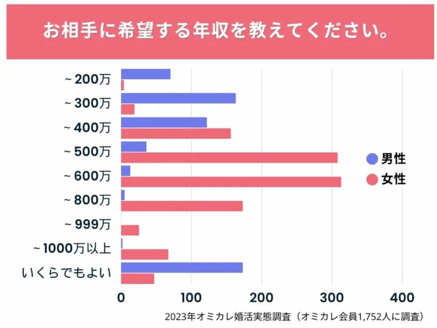 1. 女性が結婚相手に求める年収は「500~600万円」