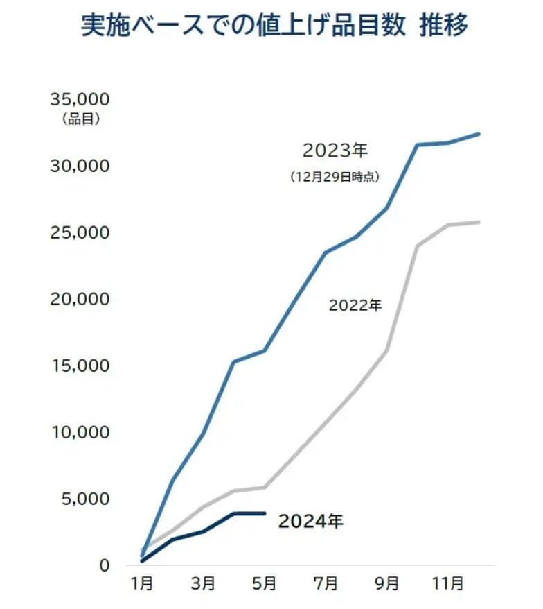1. 2024年5月までの値上げは約4000品目。昨年よりも大幅に減少