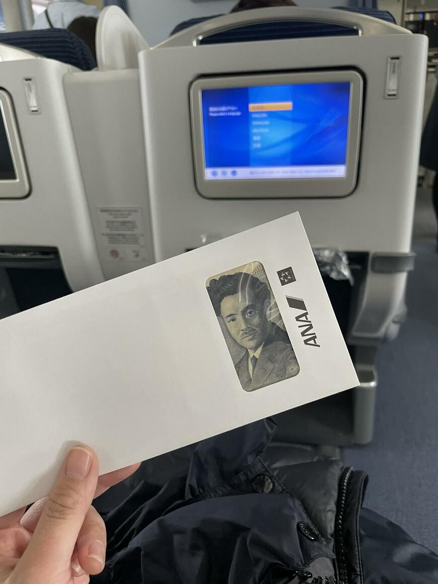 そこに収められていたのは、ANAの封筒に入れられた現金。投稿主は1月2日に起こった羽田空港のJAL機炎上事故の翌日にANAを利用し、遅延のお詫びで飲食代として渡されたとのことです。
