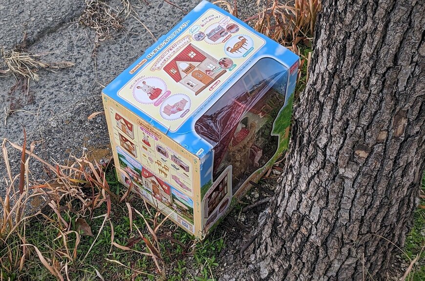 商品名は「はじめてのシルバニアファミリー(税込4800円)」。お家と人形、基本的な家具がセットになっており、初めて購入する方におすすめな商品です。落下した時に箱は少しへこんだようですが、中身は大丈夫そうです。
