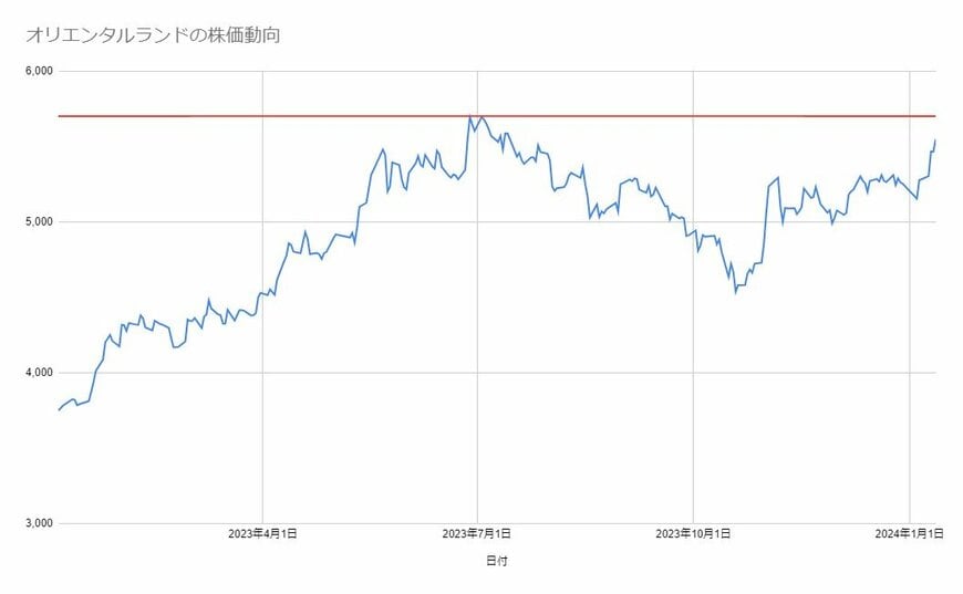 上記の通り、オリエンタルランドの株価は上場来高値をつけるなど、昨年夏に強い動きを見せていました。