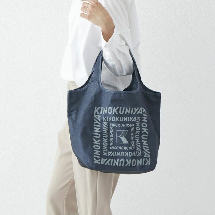 コンパクトにたたんで持ち運べるエコバッグです。折りたたんでも広げても、紀ノ国屋のロゴが見えるデザインになっています。