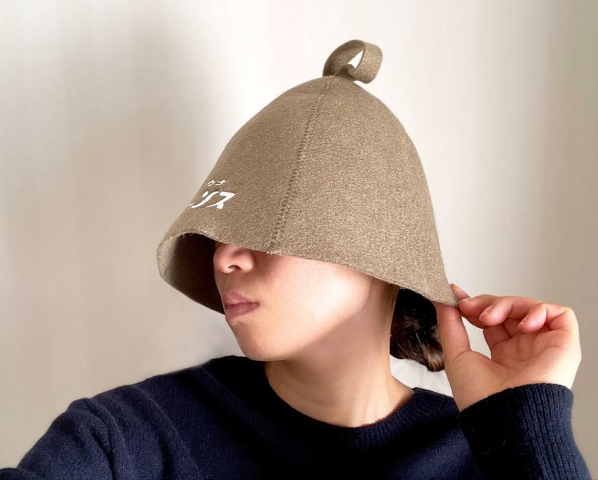 被ってみるとその「深さ」にびっくりするはず。サウナ室の中で周囲の様子が気になりにくいよう、目元までしっかり隠れるデザインになっています。目元が隠れていると表情が読み取りづらくなるので、話しかけられたくない、サウナで知り合いに会いたくないという方にもぴったりです。