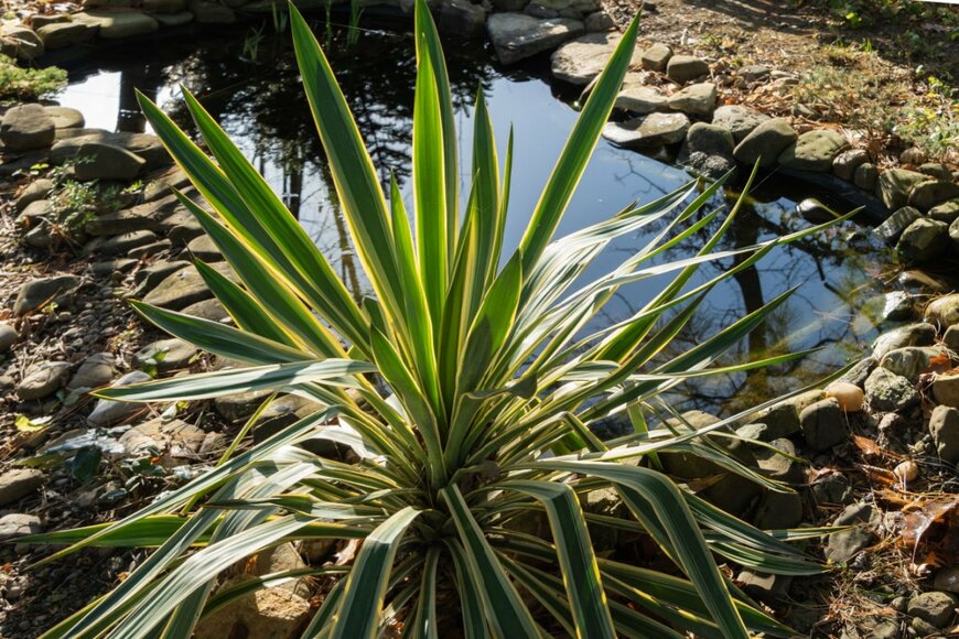 まっすぐ上を向いた細くて長い葉が印象的なユッカ。若々しい姿から「青年の木」とも呼ばれています。