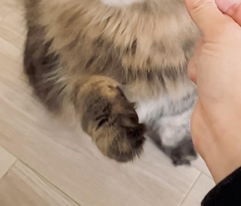 ビビリで甘えん坊な性格です。ちょっとでも知らない音や声がすると、ビクビクして隠れる子です。