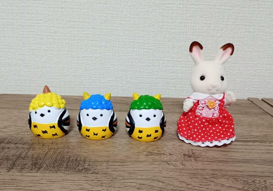 2024年1月には、写真のような「鬼」のコスプレをしたシマエナガ置物が新発売されているのを発見しました。節分らしいデザインの素敵な置物です。