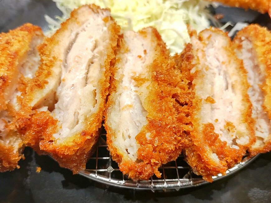 ロースミルフィーユかつは、通常のロースかつに比べても厚みがあります。口の中へ頬張ると10層に重なる豚肉から肉汁があふれ出してきてジューシー。名前の通りミルフィーユのような食感です。衣もサクサクでクドさがありません。
