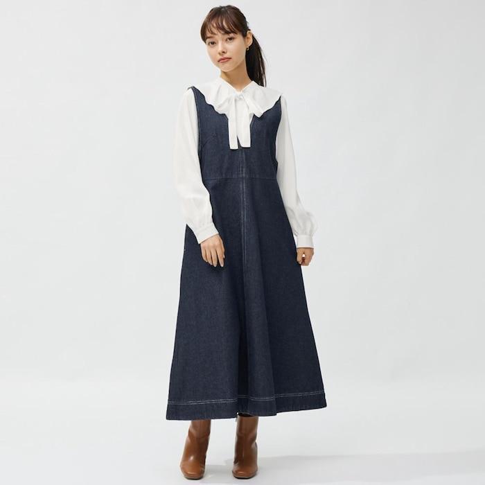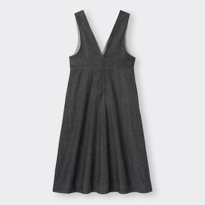 1. GUで販売されている「デニムジャンパードレス」が最高! 上品コーデにもカジュアルコーデにも使えるのが魅力的なポイントです